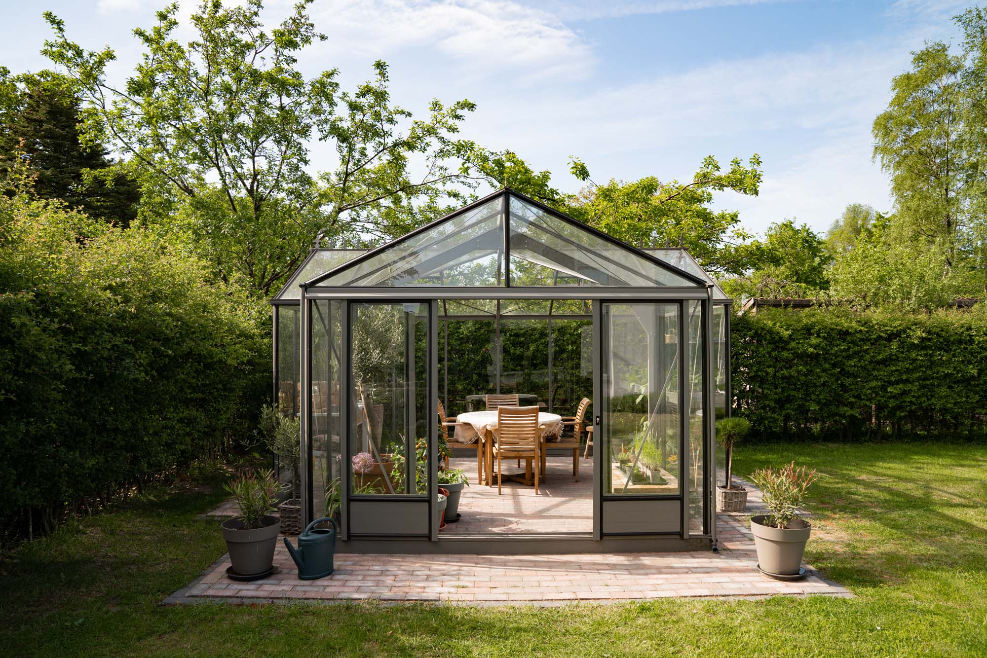 De T-Classic combineert een tijdloos ontwerp met moderne materialen voor een duurzame en stijlvolle oranjerie. Het T-vormige ontwerp biedt extra ruimte en flexibiliteit, waardoor u zowel een kweekgedeelte als een comfortabele zithoek kunt creëren. Dankzij de stevige constructie en de klassieke uitstraling is dit model een waardevolle toevoeging aan elke tuin.